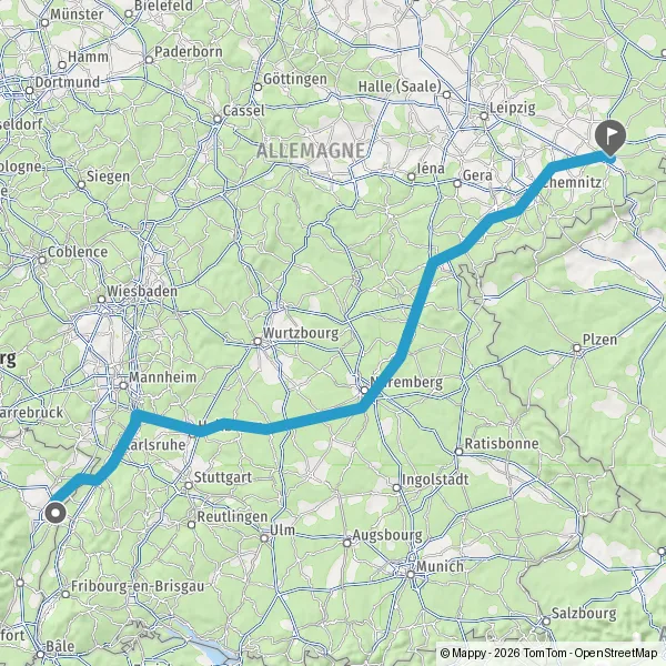 Entrer en Allemagne et prendre B500 sur 3,8 kilomètres
