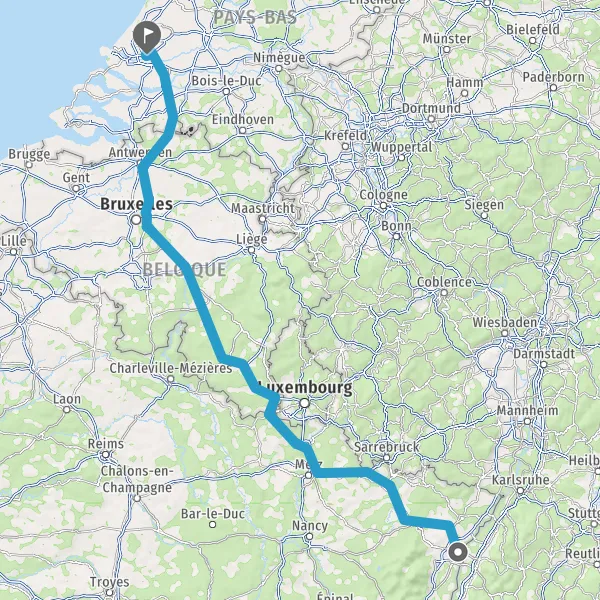 Continuer A1 A12 E19 R1 sur 41 kilomètres
