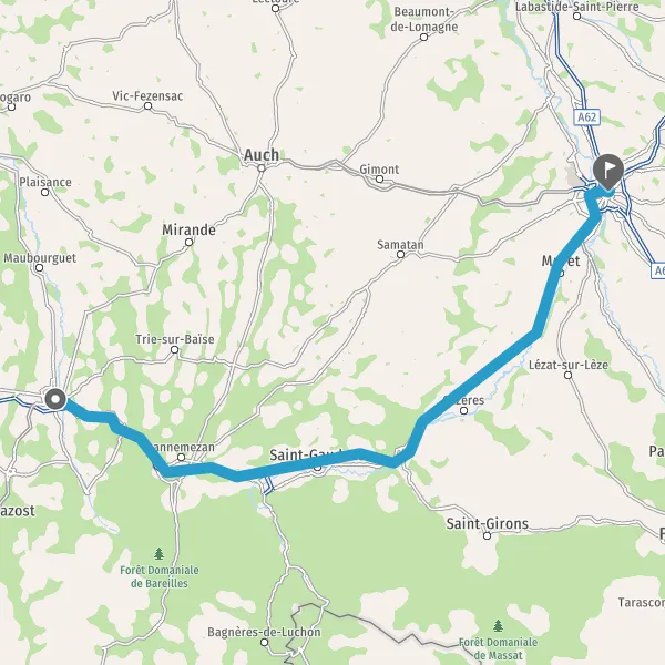 Itinéraire en voiture de Tarbes 65000 à Toulouse 31000-31500