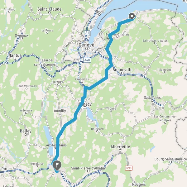 Au rond-point, prendre la 1ère sortie sur D1005 (Route de Genève) et continuer sur 4,8 kilomètres