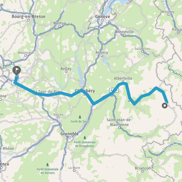 Continuer et rejoindre A43 E70. Continuer sur 73 kilomètres