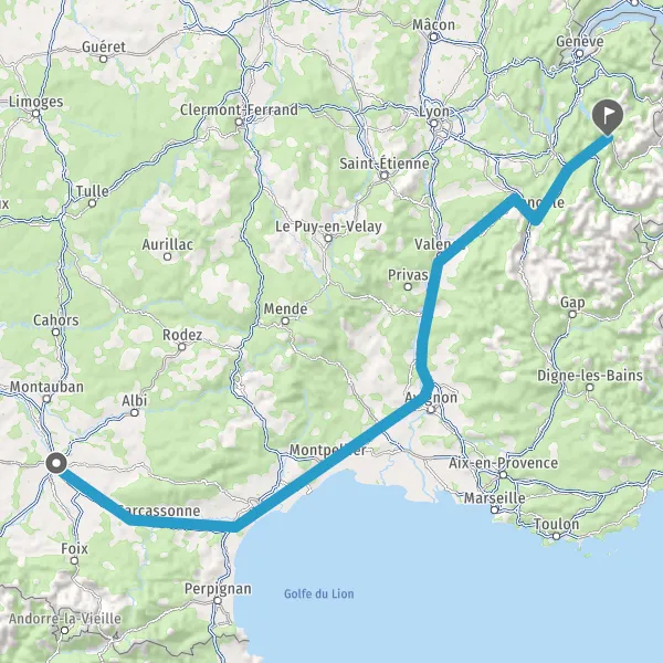 Prendre à droite et rejoindre A43 E70. Continuer sur 19 kilomètres
