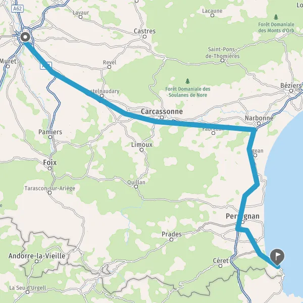 Prendre à droite et rejoindre A9 E15. Continuer sur 60 kilomètres