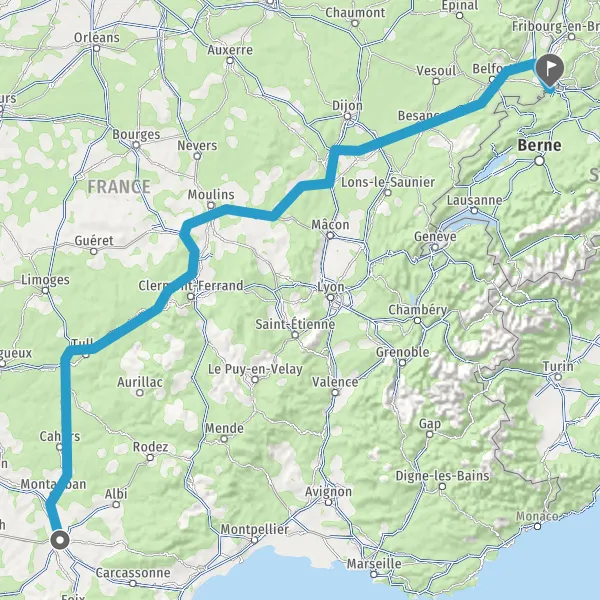 Prendre à droite et rejoindre A36. Continuer sur 226 kilomètres