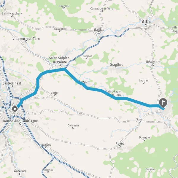 Tourner légèrement à droite sur Route de Toulouse et continuer sur 3,5 kilomètres