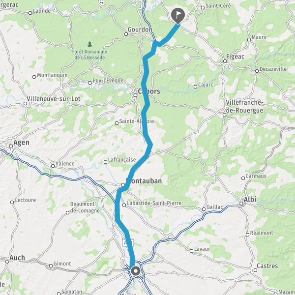 Prendre à droite et rejoindre A62. Continuer sur 33 kilomètres