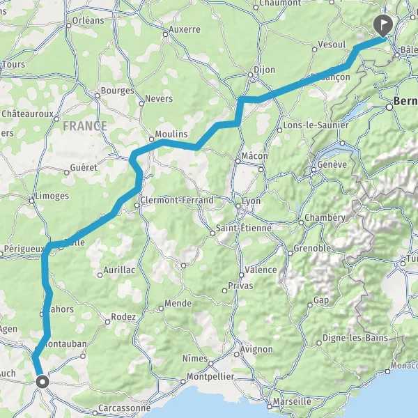 Prendre à droite et rejoindre A36. Continuer sur 221 kilomètres