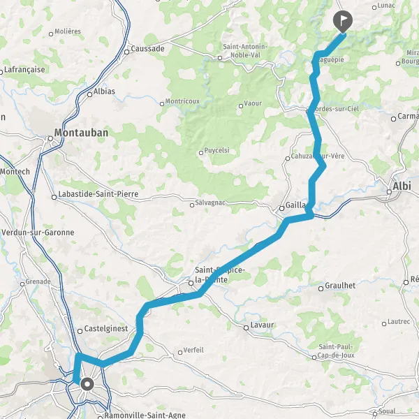 Tourner à droite sur D922 (Route de Gaillac) et continuer sur 13 kilomètres
