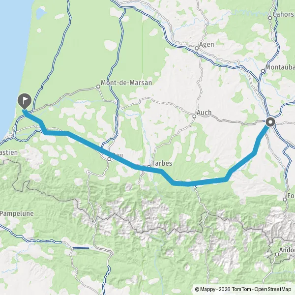 Prendre à droite et rejoindre A64 E80. Continuer sur 1,9 kilomètre