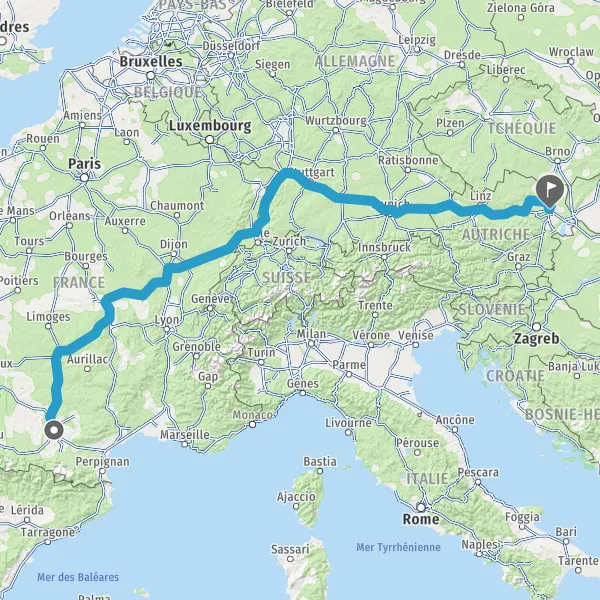 Prendre à droite et rejoindre A36. Continuer sur 236 kilomètres