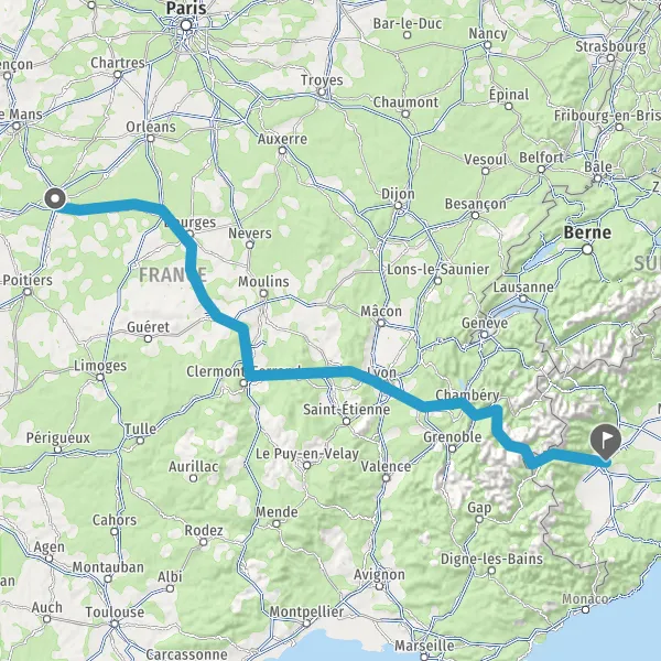 Itinéraire en voiture de Tours 37000-37200 à Turin 10024-10156 Piémont (Italie)