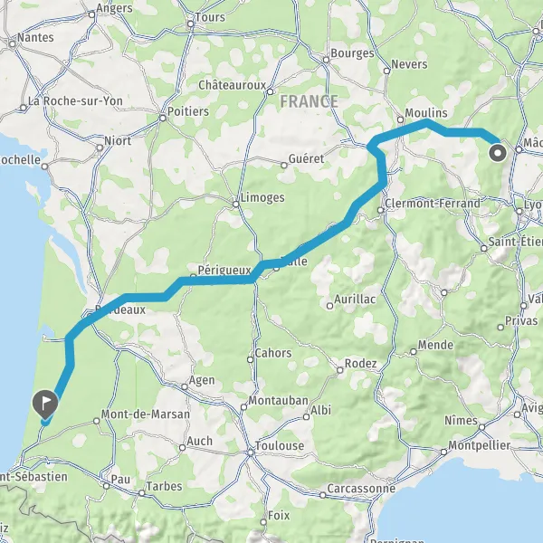Prendre à droite et rejoindre A63. Continuer sur 117 kilomètres