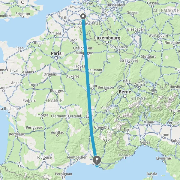 | Distance en train | 900 km à 961 km |