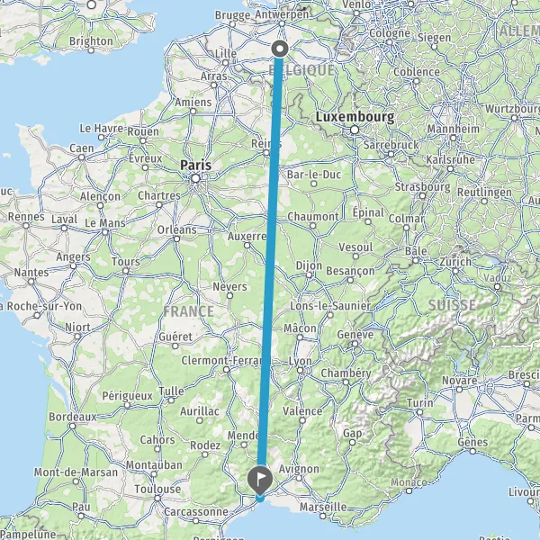| Distance en train | 821 km à 900 km |