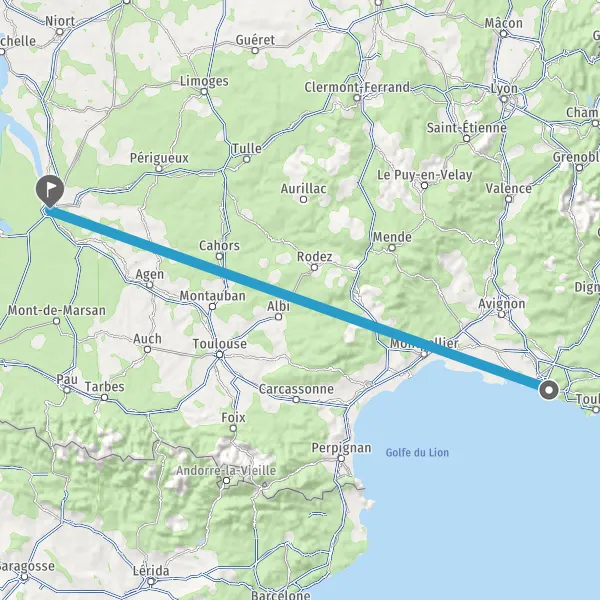 | Distance en train | 533 km à 1168 km |
