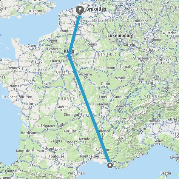 | Distance en train | 849 km à 882 km |