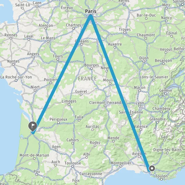 | Distance en train | 543 km à 1163 km |