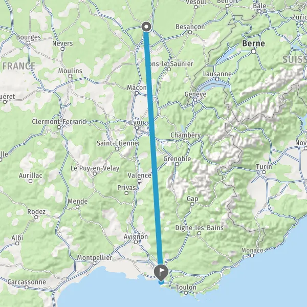 | Distance en train | 454 km à 496 km |