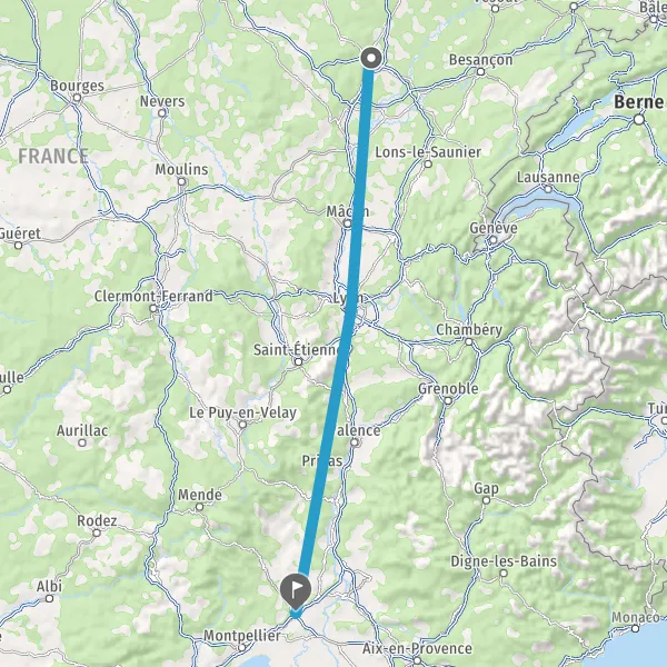 | Distance en train | 394 km à 410 km |