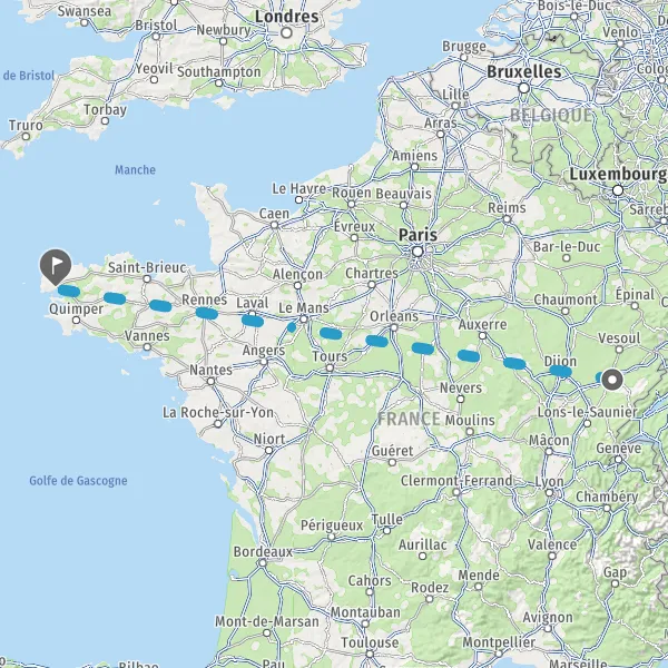 Ne perdez plus votre temps à chercher un billet de train pas cher, Mappy vous permet de comparer tous les prix et tous les horaires pour réserver votre train de Besançon à Brest avec nos partenaires : SNCF, Ouigo. Comparez votre trajet Besançon Brest en train, entre différentes lignes ou avec les autres modes de transports, et calculez ainsi l'économie de temps et de coût réalisée.