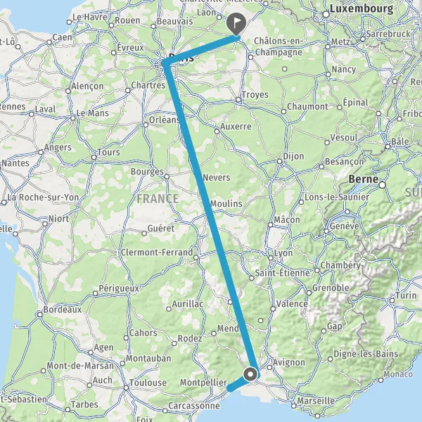 | Distance en train | 780 km à 829 km |