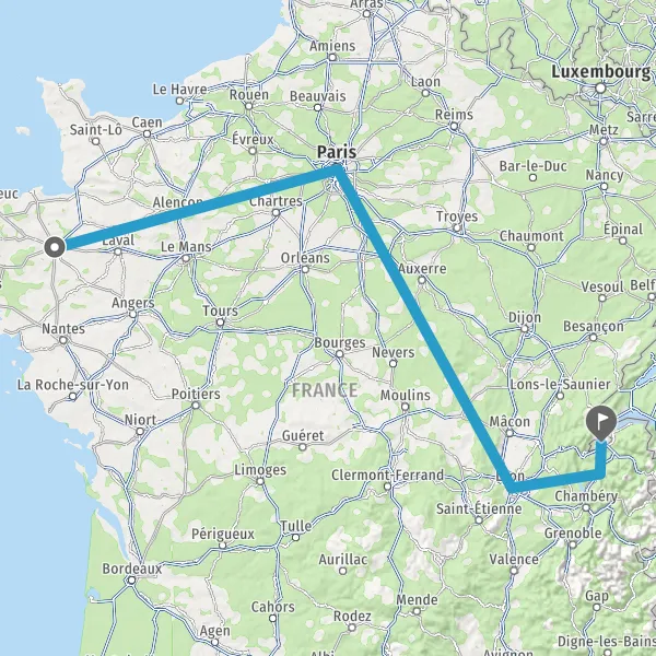 | Distance en train | 705 km à 731 km |