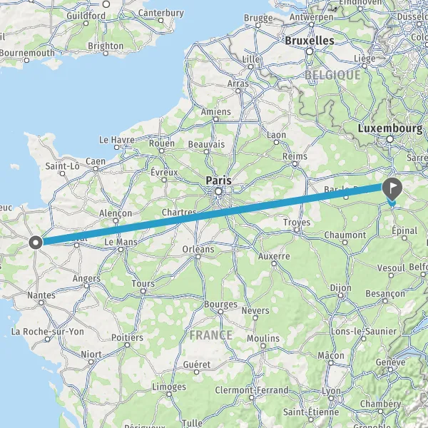 | Distance en train | 596 km à 905 km |