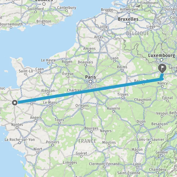 | Distance en train | 623 km à 665 km |