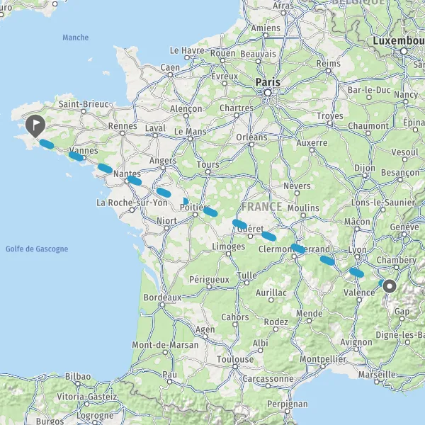 Ne perdez plus votre temps à chercher un billet de train pas cher, Mappy vous permet de comparer tous les prix et tous les horaires pour réserver votre train de Grenoble à Quimper avec nos partenaires : SNCF, Ouigo. Comparez votre trajet Grenoble Quimper en train, entre différentes lignes ou avec les autres modes de transports, et calculez ainsi l'économie de temps et de coût réalisée.