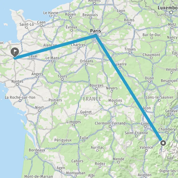 | Distance en train | 656 km à 847 km |