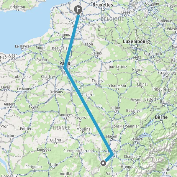 | Distance en train | 609 km à 657 km |
