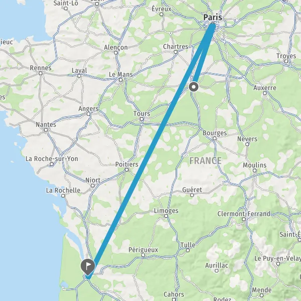 | Distance en train | 412 km à 616 km |