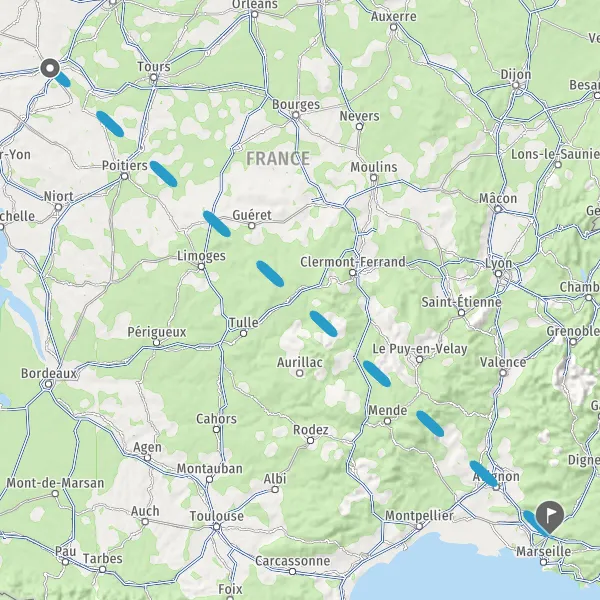 | Distance en train | 737 km à 965 km |