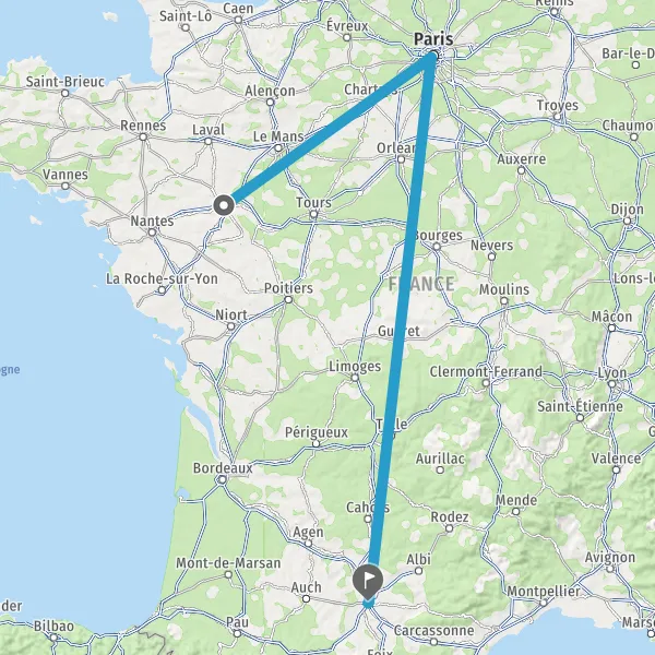 | Distance en train | 606 km à 881 km |