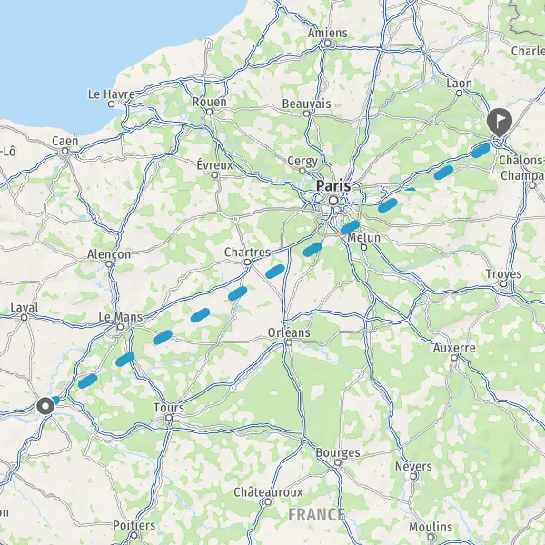 Itinéraire en train de Angers 49000-49100 à Reims 51100