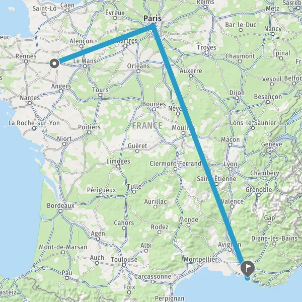 | Distance en train | 735 km à 992 km |