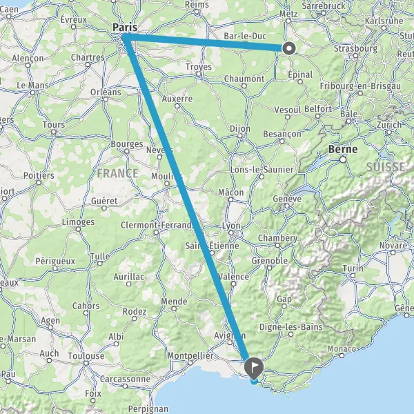 | Distance en train | 620 km à 945 km |