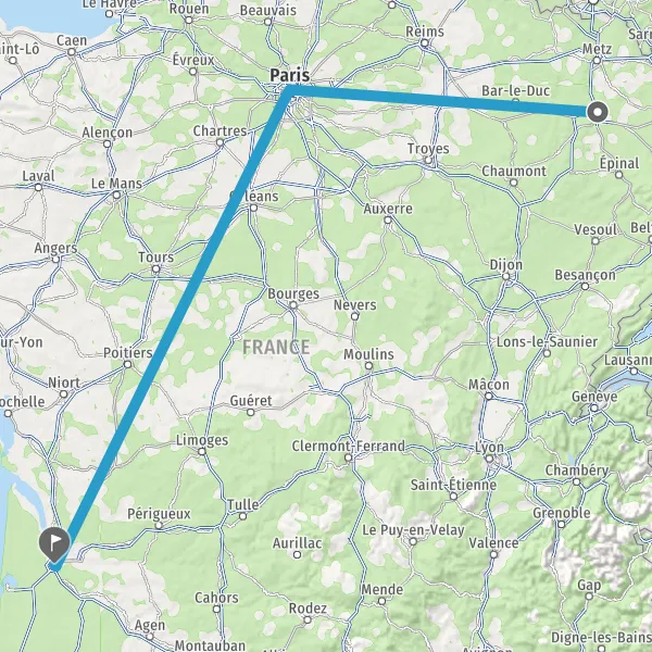 | Distance en train | 785 km à 838 km |