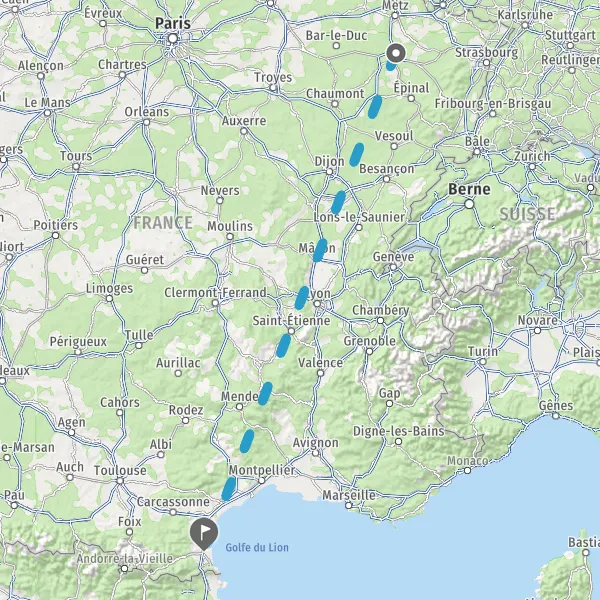 | Distance en train | 972 km à 1051 km |