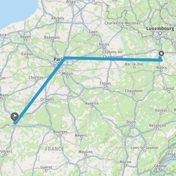 | Distance en train | 472 km à 517 km |