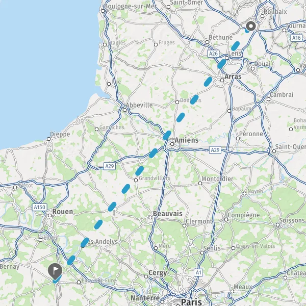 Ne perdez plus votre temps à chercher un billet de train pas cher, Mappy vous permet de comparer tous les prix et tous les horaires pour réserver votre train de Lille à Évreux avec nos partenaires : SNCF, Ouigo. Comparez votre trajet Lille Évreux en train, entre différentes lignes ou avec les autres modes de transports, et calculez ainsi l'économie de temps et de coût réalisée.