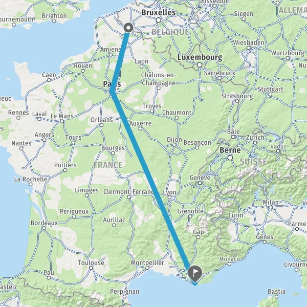 | Distance en train | 883 km à 910 km |