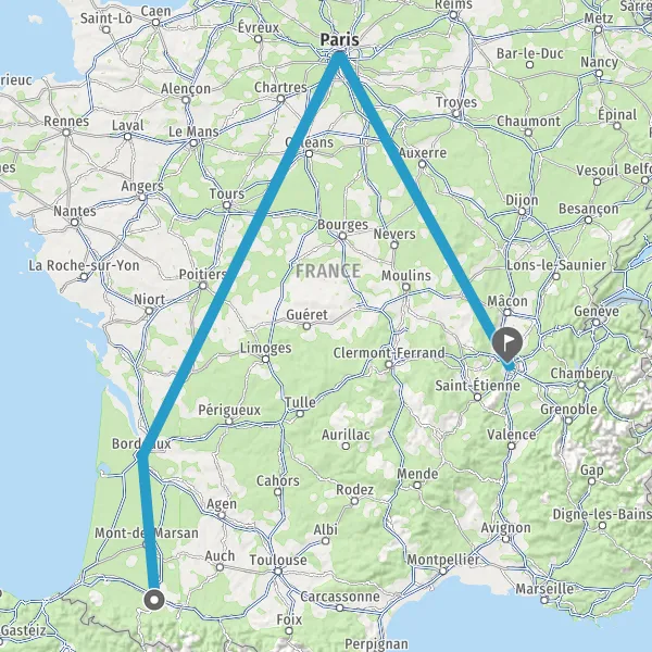| Distance en train | 843 km à 1050 km |