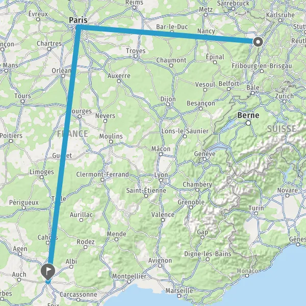 | Distance en train | 936 km à 988 km |