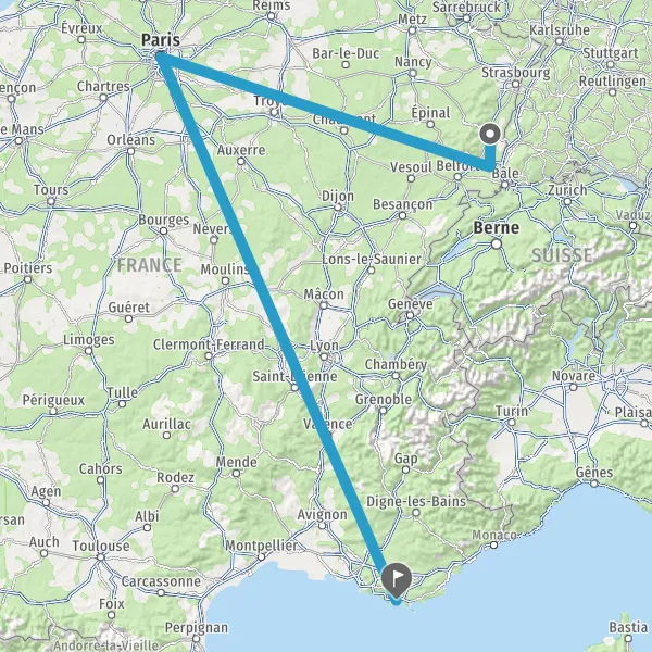 | Distance en train | 645 km à 690 km |