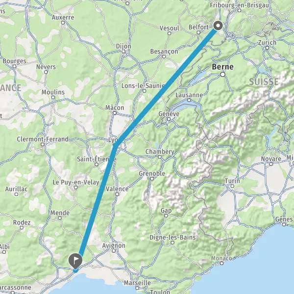 | Distance en train | 536 km à 646 km |
