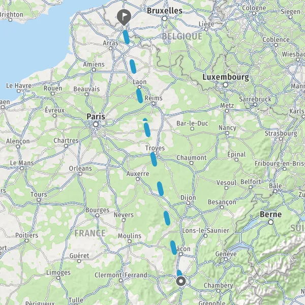 | Distance en train | 575 km à 613 km |