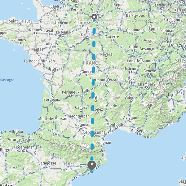 | Distance en train | 838 km |
