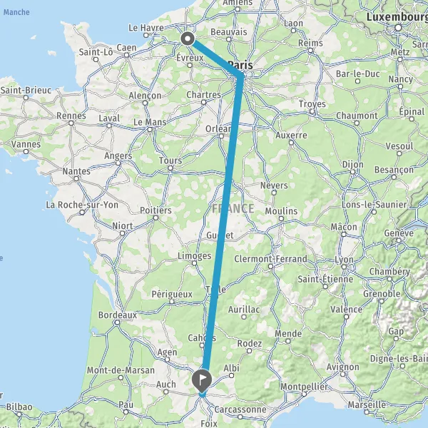 | Distance en train | 704 km à 824 km |