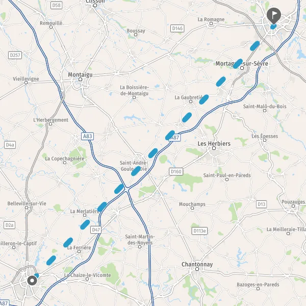 Venir à Cholet : Cholet est accessible par le train (gare sncf) ou par le car (gare routière) et dispose d'un aérodrome (l'aérodrome Cholet le Pontreau est situé sur un plateau à 1500 mètres au Nord de la ville). Pour venir par la route, l'accès est direct depuis Nantes, à 45 mn par la voie express N249 sortie La Séguinière. Depuis Angers et La Roche sur Yon, la ville est à moins d’1h par l’autoroute A87 sortie n°26 Cholet Nord et sortie n°27 Cholet Sud.Se déplacer à Cholet : A Cholet, la circulation automobile est organisée autour d'un grand périphérique , le stationnement est facilité par près de 4 000 emplacements disponibles en centre-ville. La ville propose aussi du covoiturage avec des parkings de covoiturage dédiés.